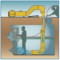 Equip de ventilació assistida per a treballs en espais confinats com sitges, cisternes i dipòsits.
